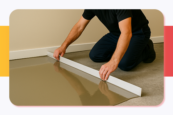 Мы всегда предварительно оцениваем состояние основания. При необходимости предложим выравнивание: фанерой, наливной смесью или другим подходящим способом.